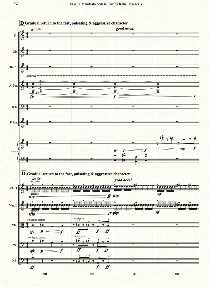 Manifesto pour la Paix  for strings, woodwind, alto sax & piano – 10 min.